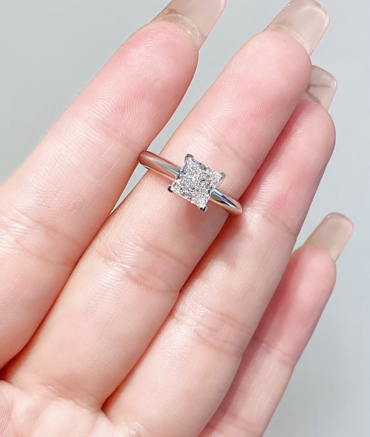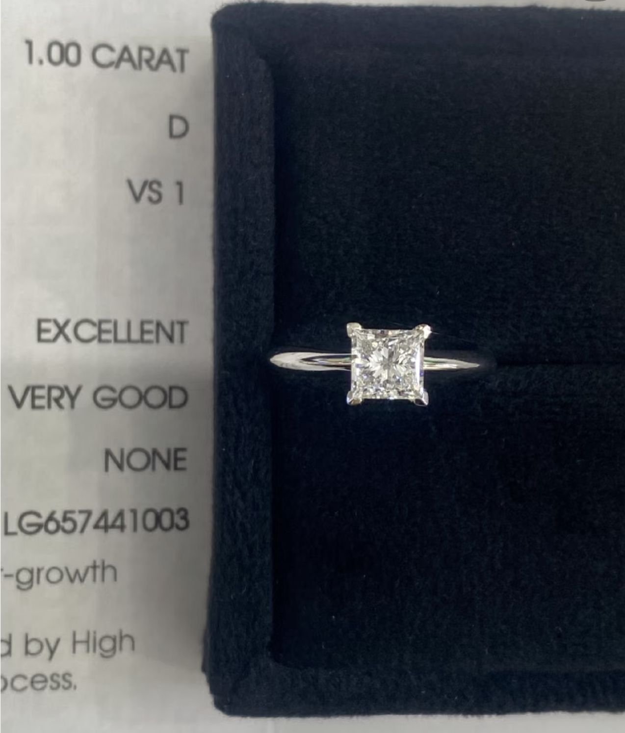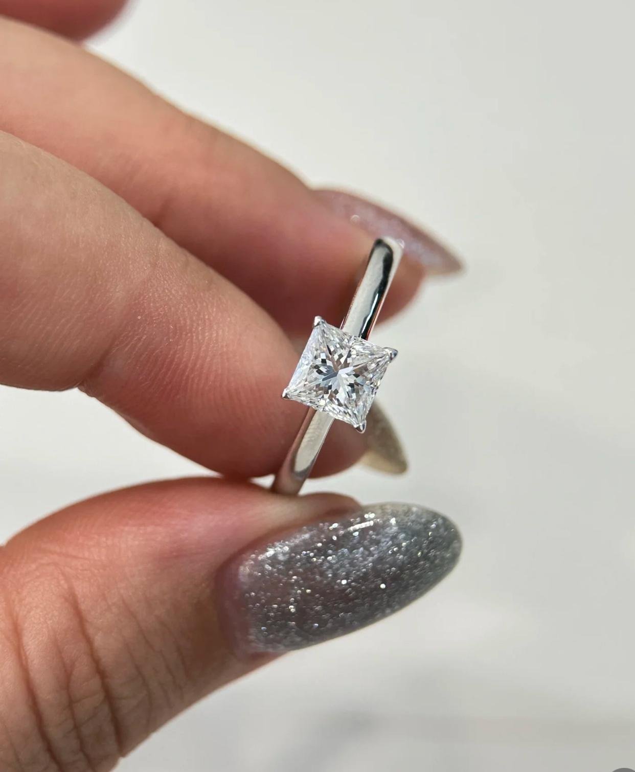 ⇒ Engagement Ring: Flawless D-color princess-cut lab-grown diamond, available in various carat options, radiating brilliance.